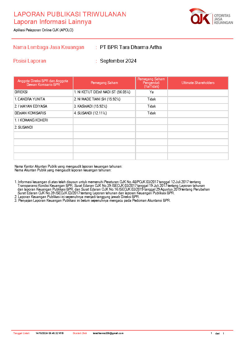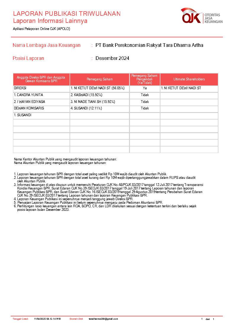 BANK TARA (PT BPR TARA DHARMA ARTA)