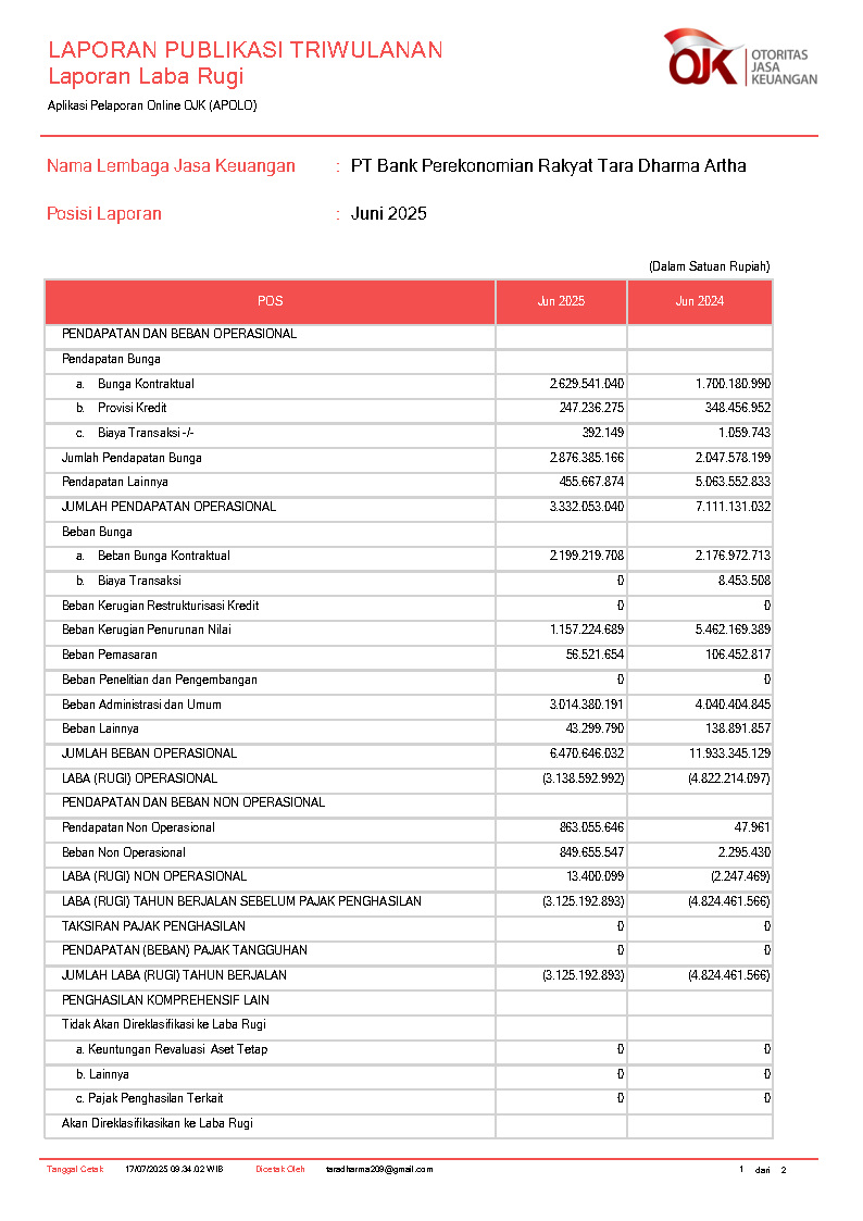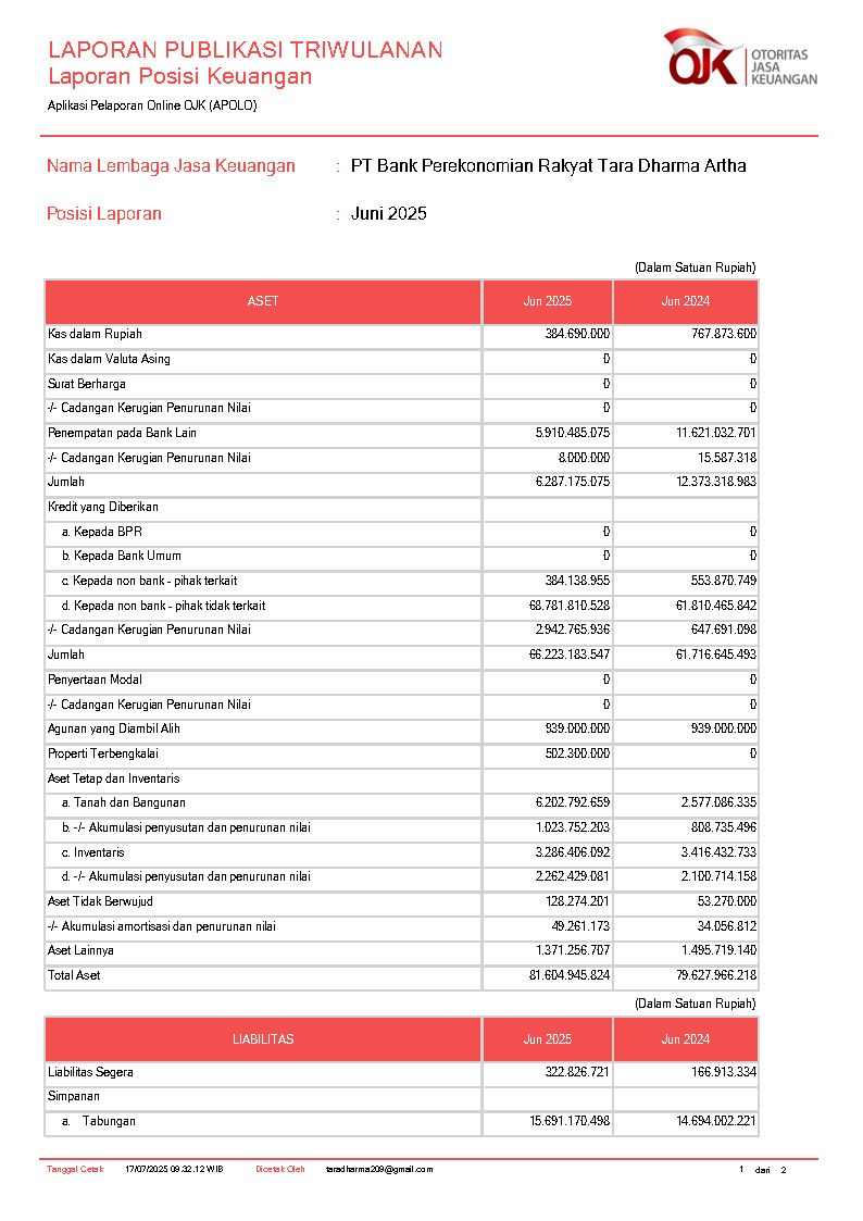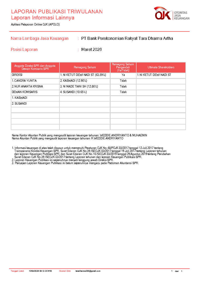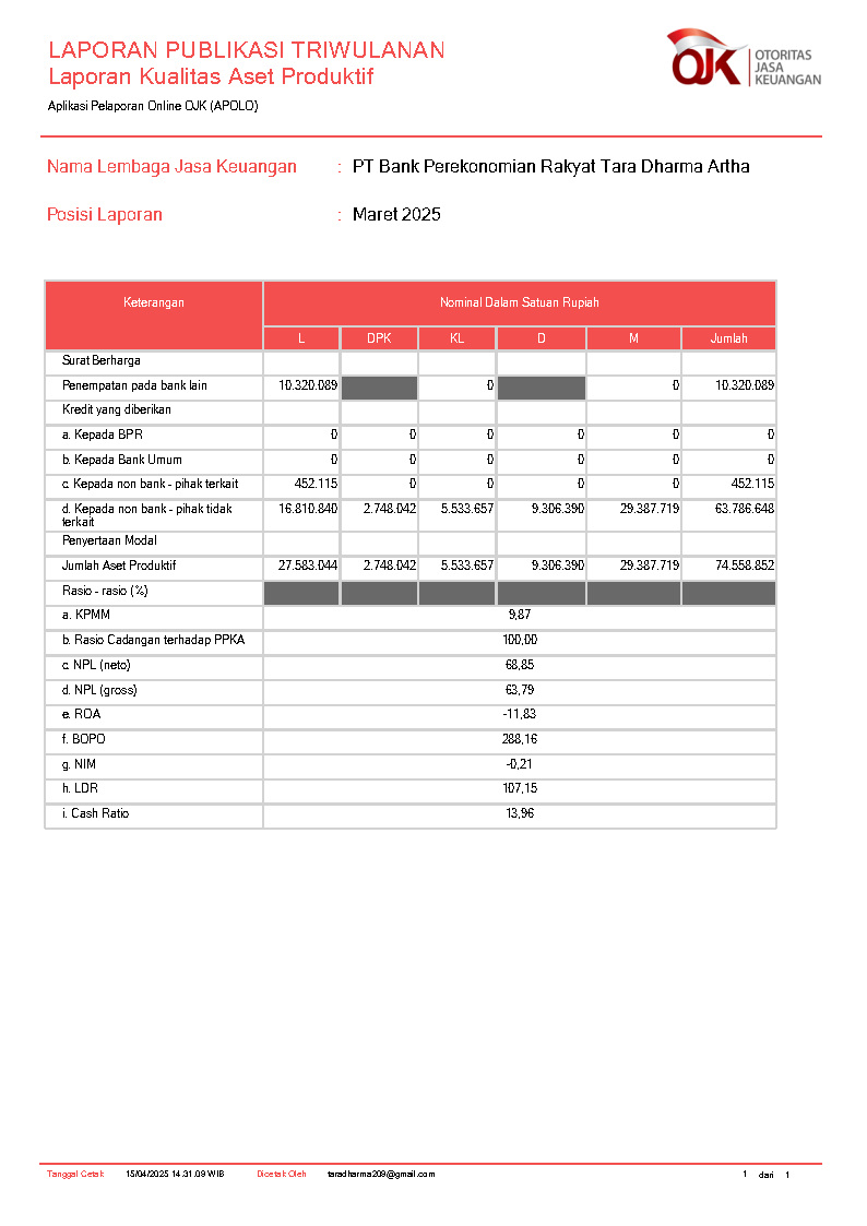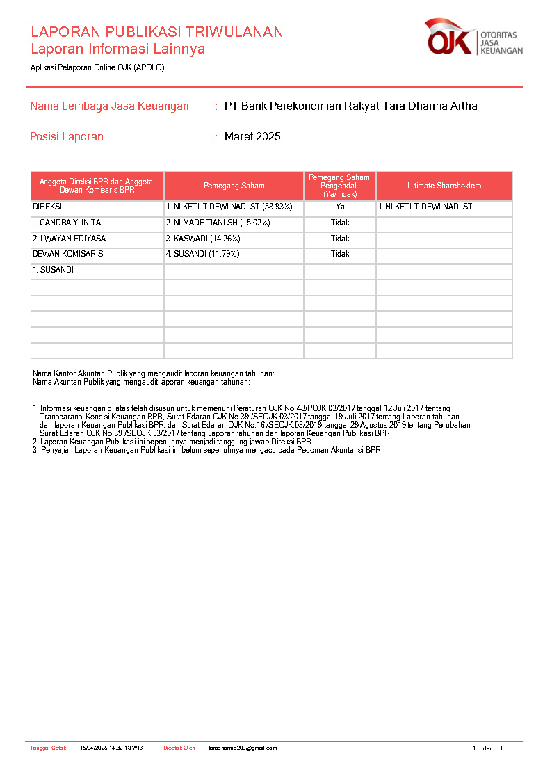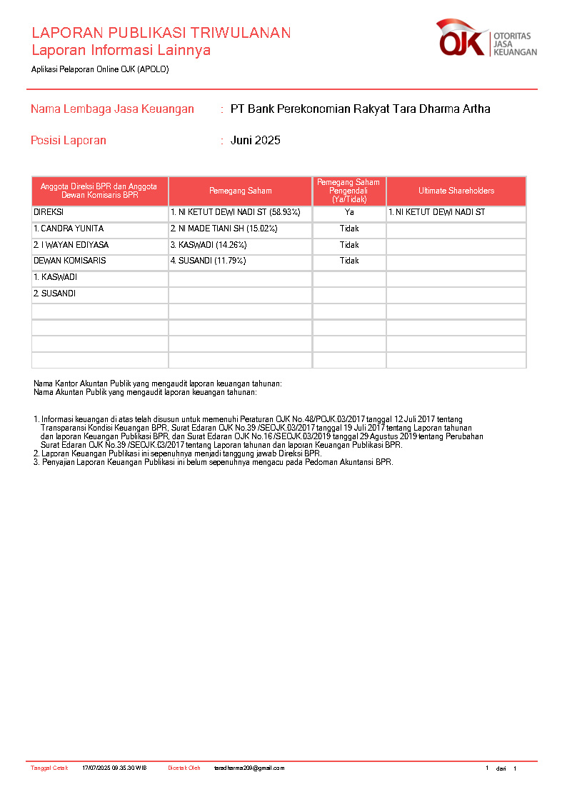 PT BANK PEREKONOMIAN RAKYAT TARA DHARMA ARTHA