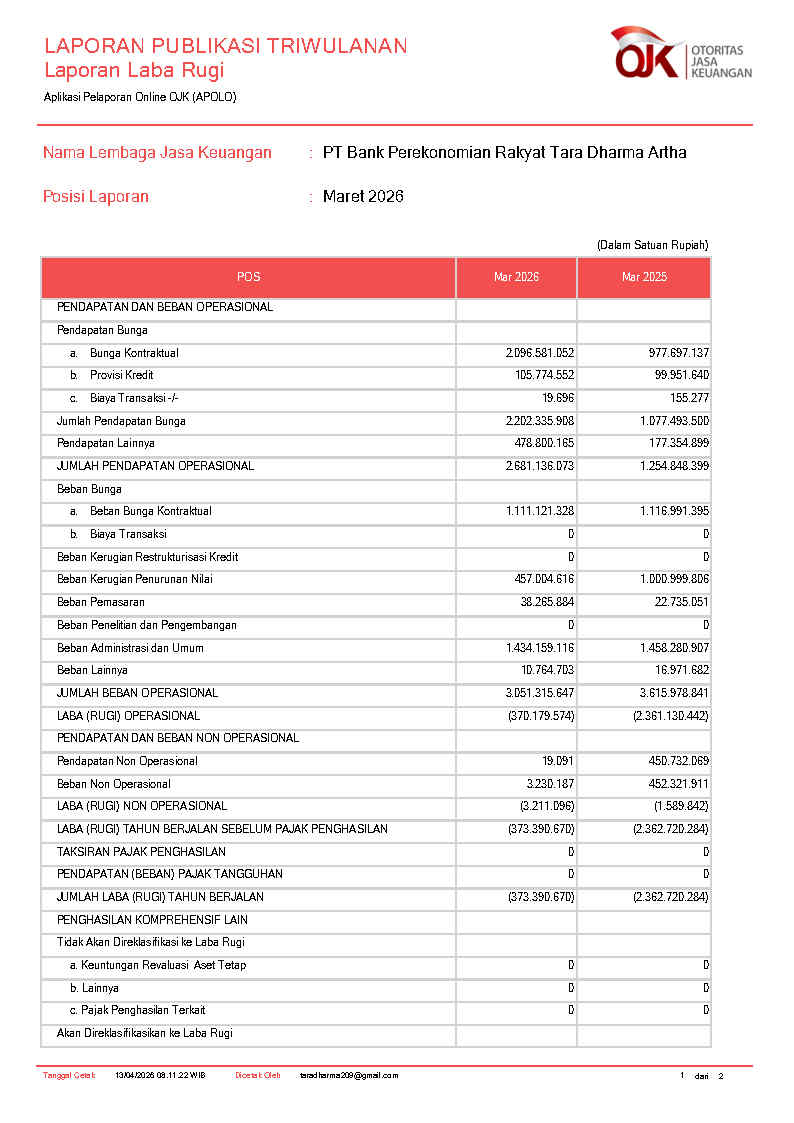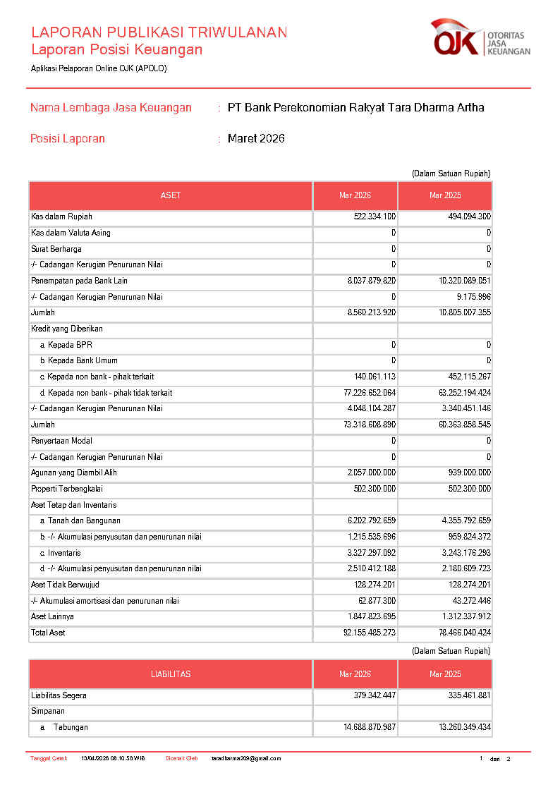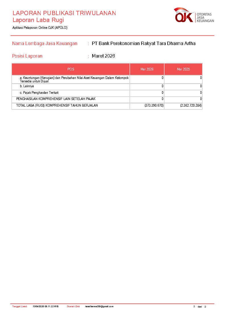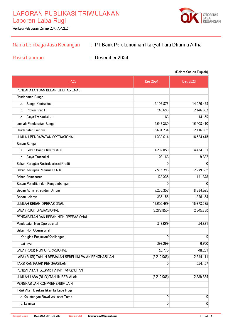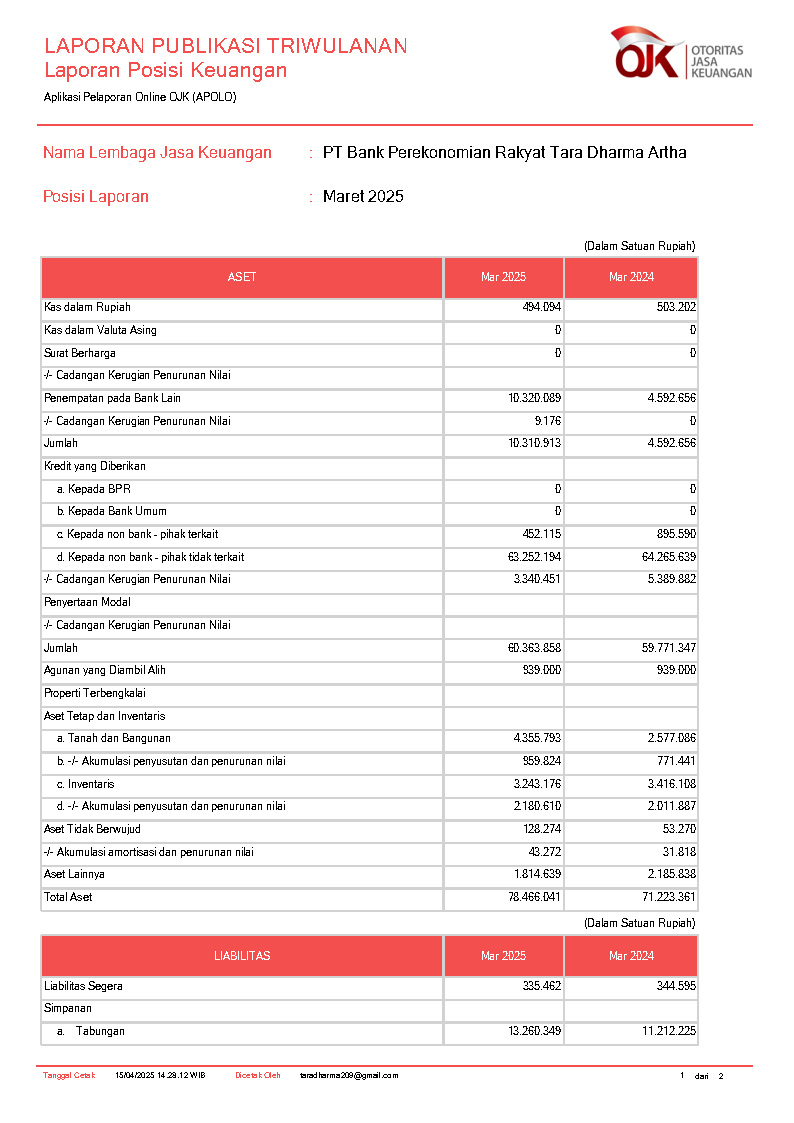 PT BANK PEREKONOMIAN RAKYAT TARA DHARMA ARTHA