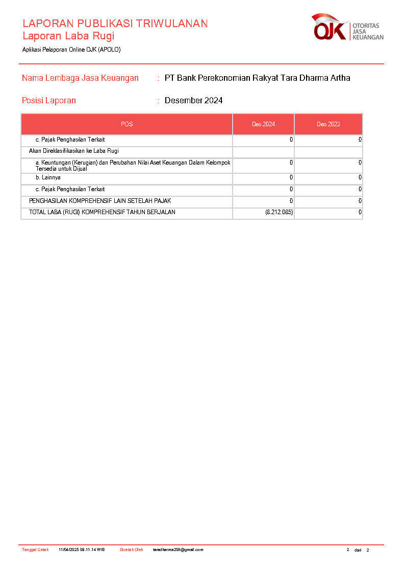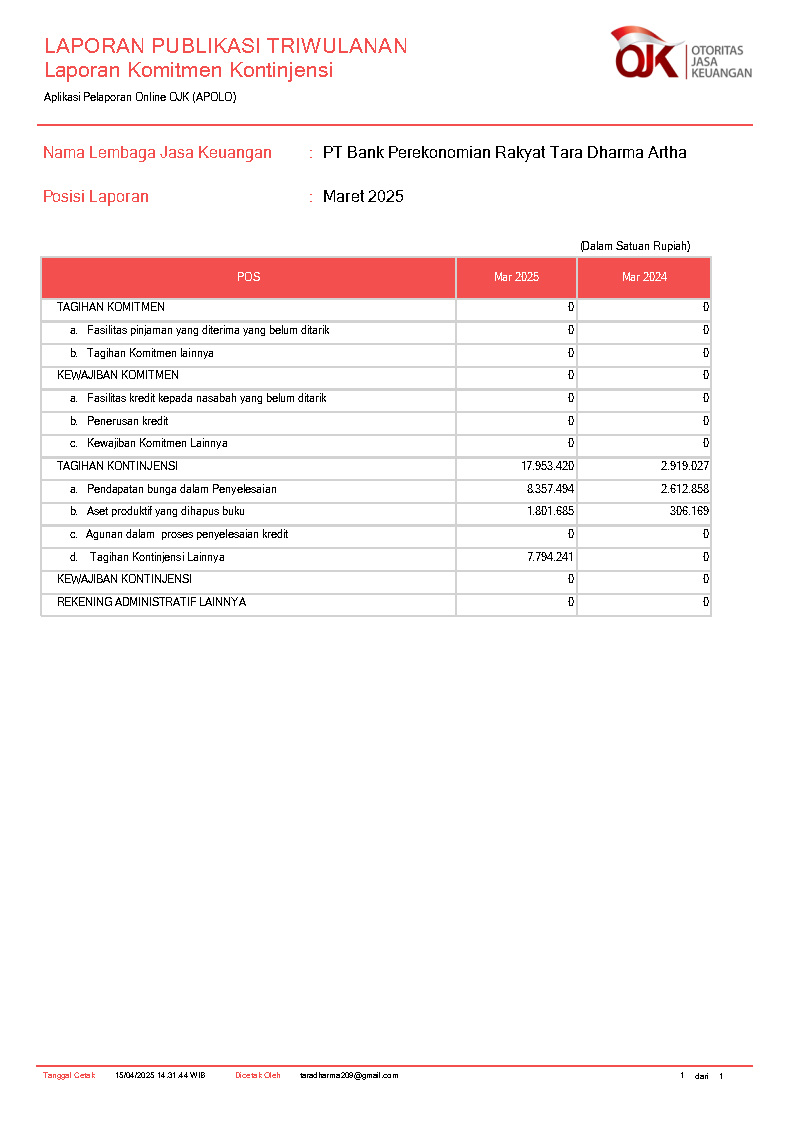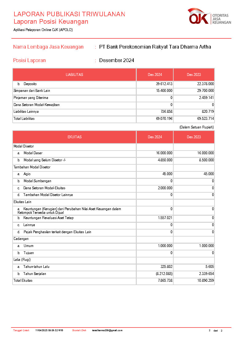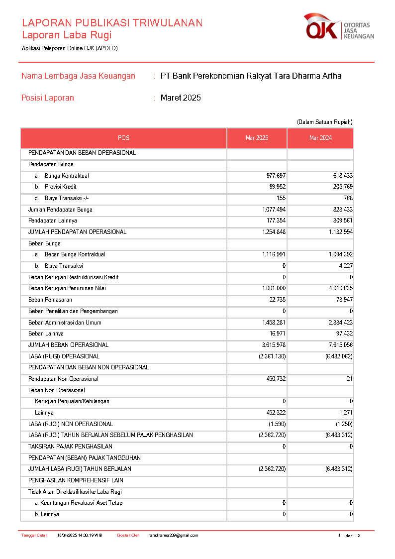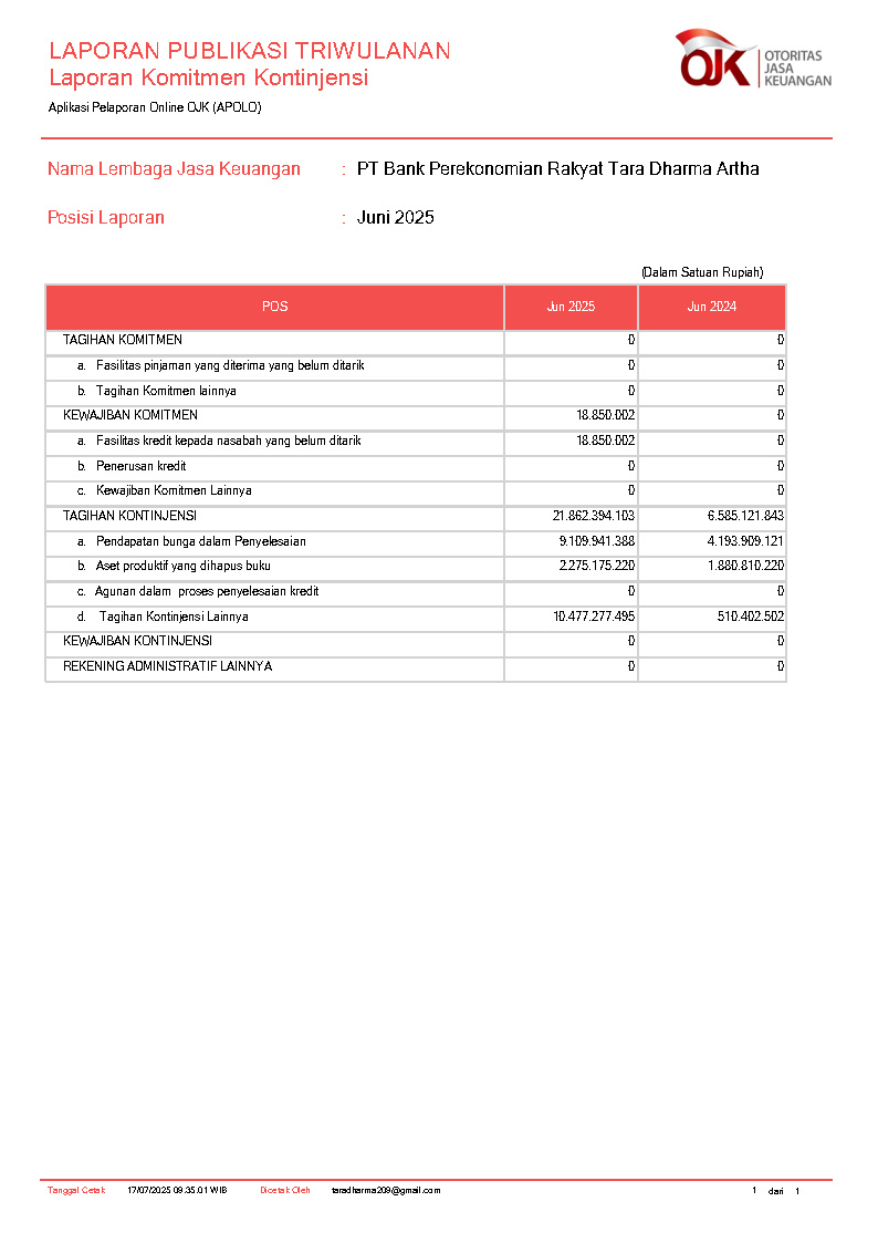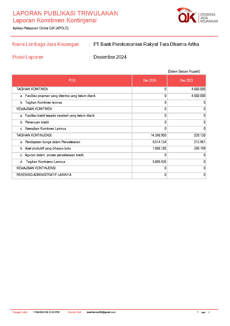 PT BANK PEREKONOMIAN RAKYAT TARA DHARMA ARTHA