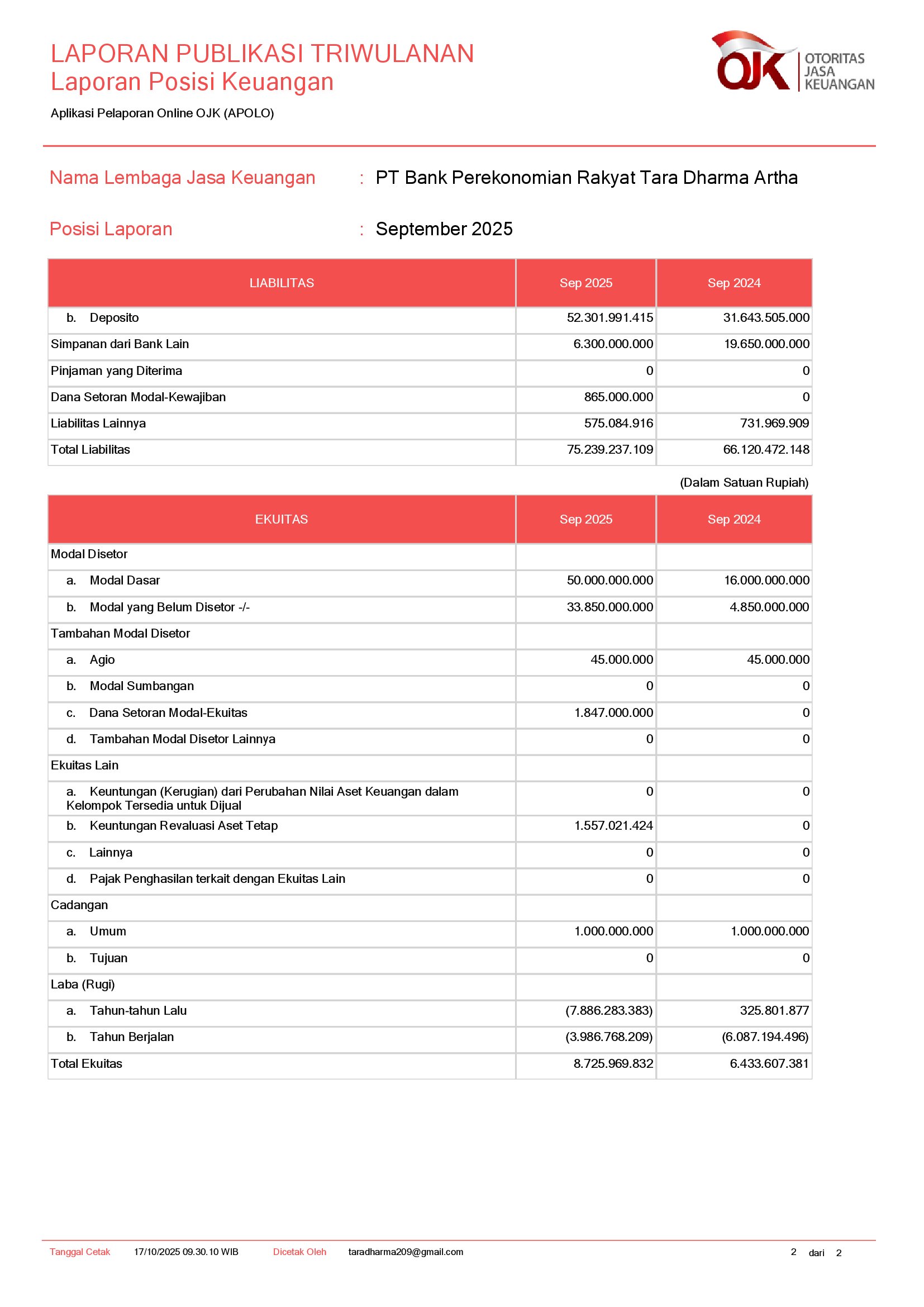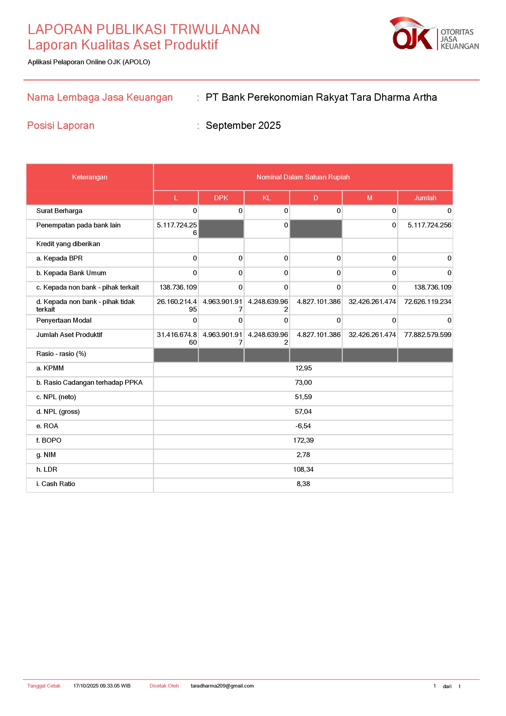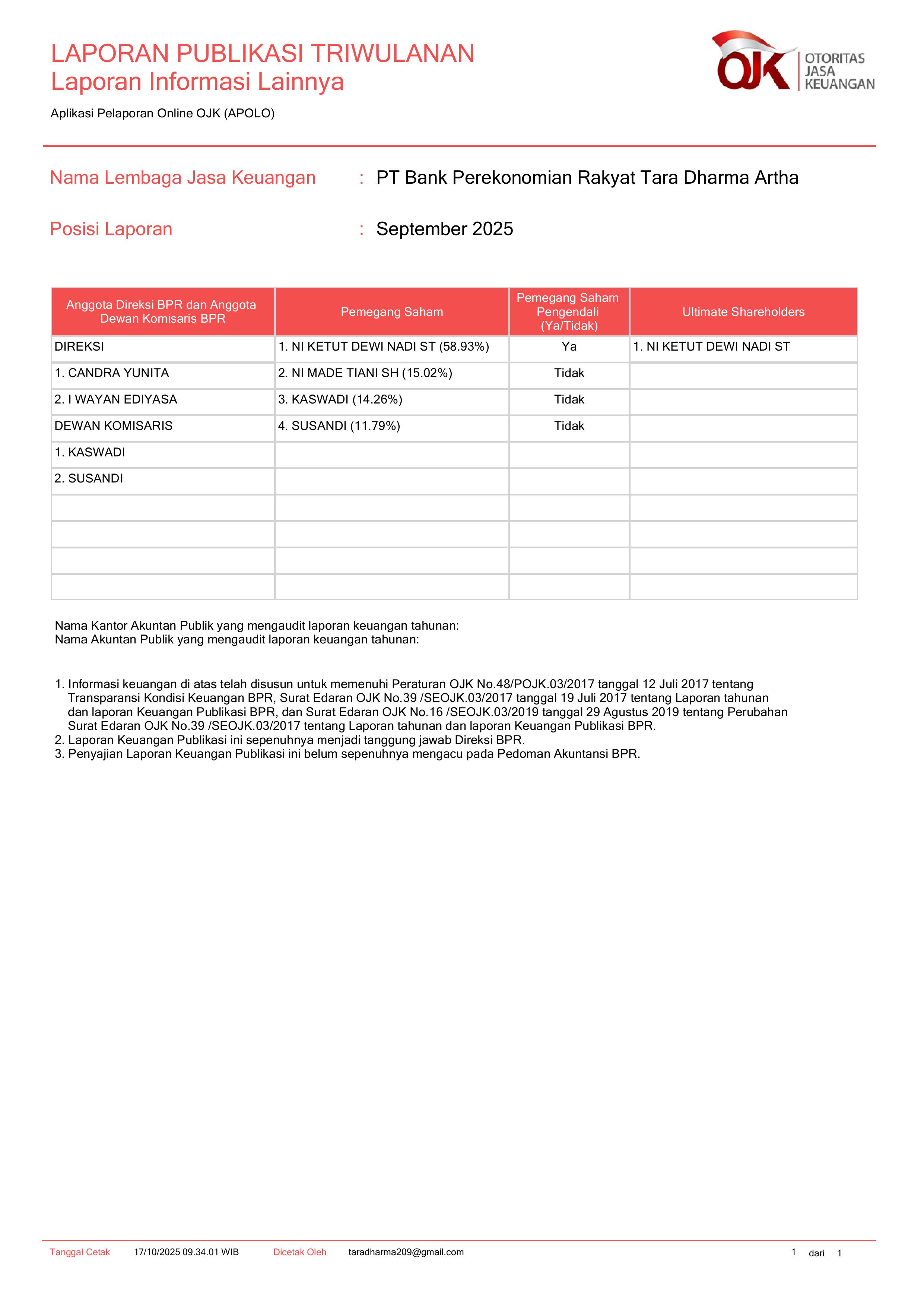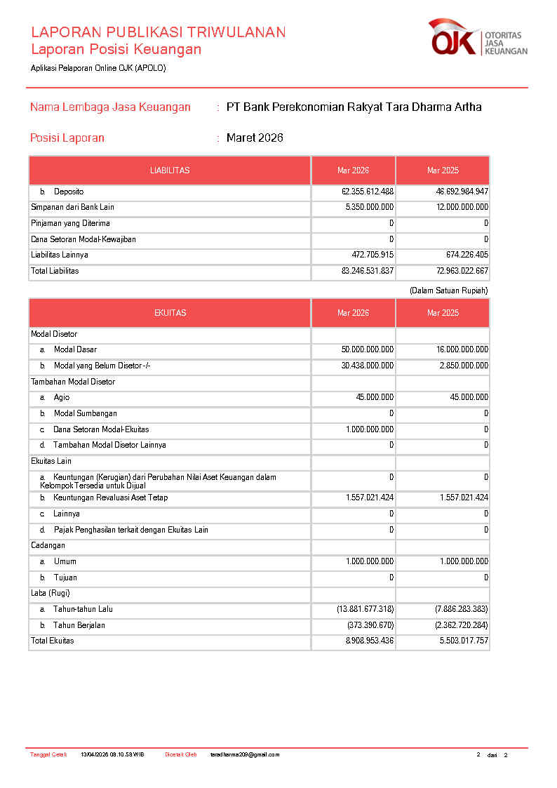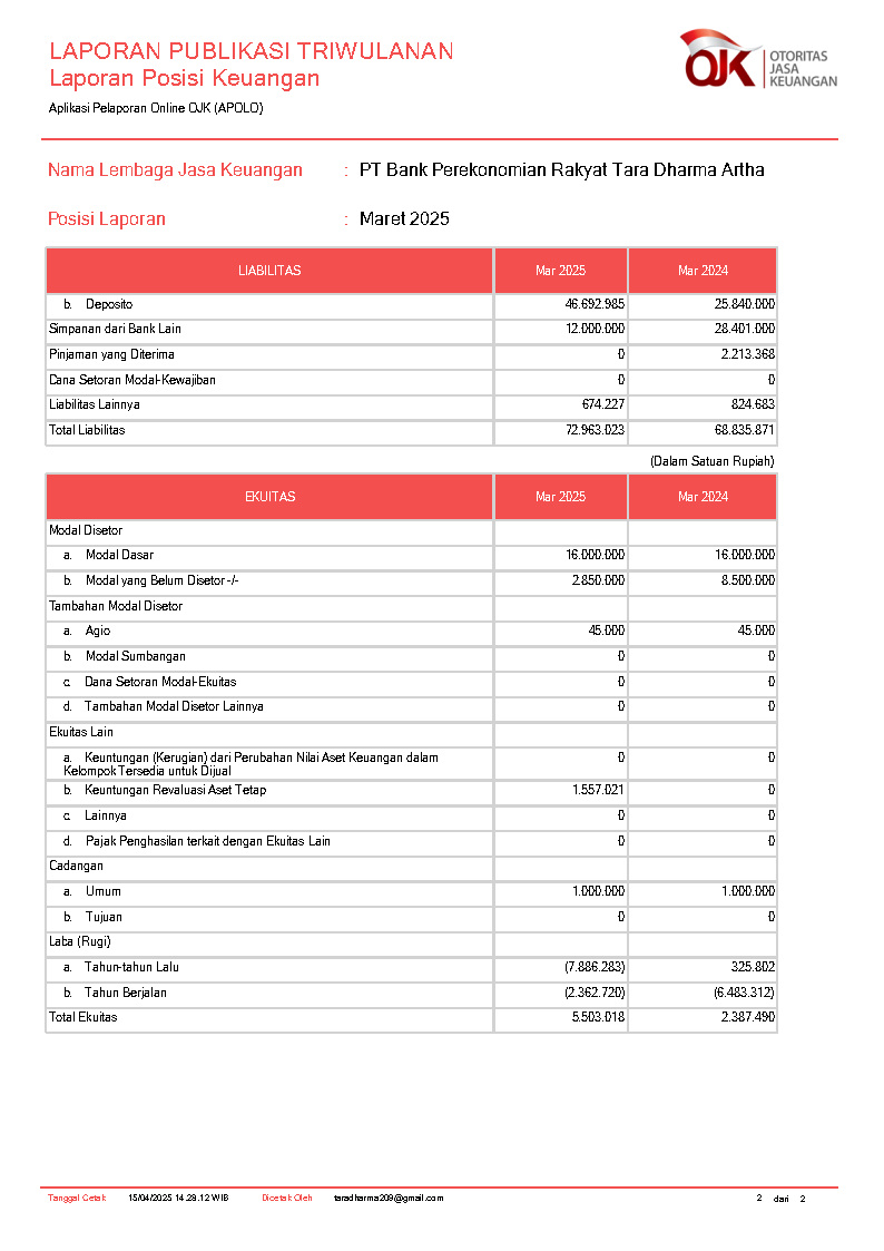 PT BANK PEREKONOMIAN RAKYAT TARA DHARMA ARTHA